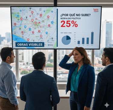 Gobernar bien es una condición necesaria, pero no suficiente. Para convertir la gestión en capital político se requiere orden, método y experiencia. En Santa Mora & Asociados le recomendamos seguir los siguientes pasos: Primero, organizar la información institucional y presentarla en mapas de obras y servicios. No se trata solo de mostrar dónde se invirtió, sino de entender cómo se distribuye el esfuerzo, qué zonas concentran mayor impacto y dónde es necesario reforzar presencia.